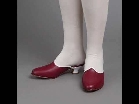 Sophie 18th century mules are the perfect slippers for your Georgian-era impressions. Correct for c. 1760s - 1790s, these adorable little backless mules work wonderfully for both working and upper class, with short 1.75" / 4.45 cm French heel, a shaped vamp, and softly tapered toe.