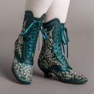 Indulge in a piece of history with Flora Embroidered Boots, an exclusive reproduction of the intricate opera and evening boots popular in the late Victorian period. Expertly crafted with intricate botanical detailing, these stunning satin boots will take you back to an era of sophistication and finesse. Wear them with bustle and Belle Epoque attire from the 1870s to c. 1900, or with modern dress as a statement piece.