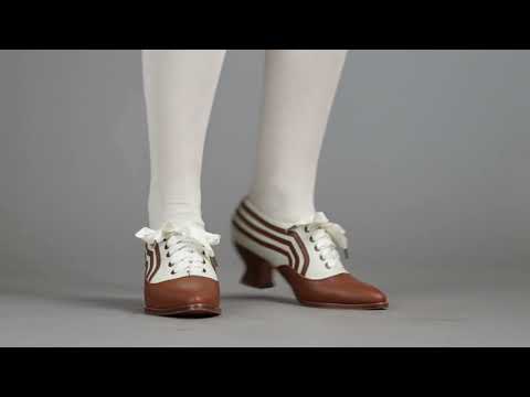 These attractive lace-up shoes have all the style and sass of footwear from c. 1900 through the 1920s and will keep you on your feet and comfortable all day, whether you're attending historical costuming events or walking the streets of New York City. Bernadettes feature our sturdy 2 inch / 5 cm French heel, welted hard-wearing leather soles, pointed toes, and an adjustable lace-up closure, plus all that style with eye-catching contrast stripes on all-leather uppers. Delicious!