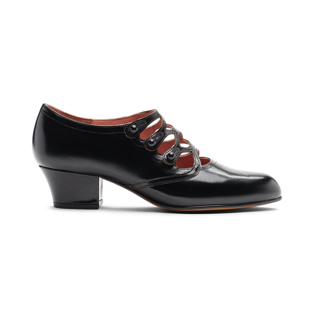 Gloria seamlessly combines all of the elegance of 1910s/1920s footwear with practicality, resulting in a refined shoe fit for all-day wear. Finely detailed leather straps with period-authentic cutouts glide gracefully over the vamp and close with functional matching buttons. Gloria's comfortable almond toe and stable, 1.6"/4 cm Cuban heel make this shoe suited for promenades on the boat deck and dancing the night away. This wonderfully versatile shoe is accurate to the 1910s all the way through to the 1940s. Gloria is available in both standard and wide width.