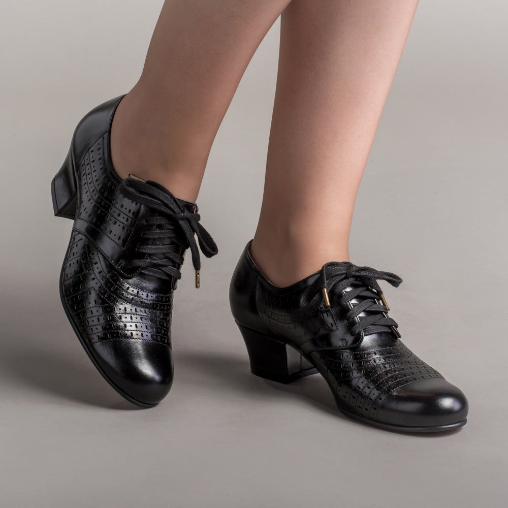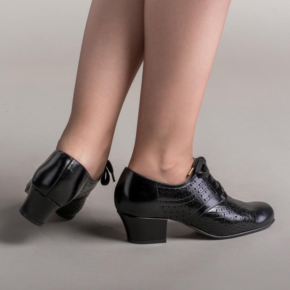 The Bellevue Oxfords are ideal for all attire from the 1920s to the 1960s, especially for CC41 compliant and nurse uniform shoes. Bellevue comes in a high-shine, glacé finish based on originals.