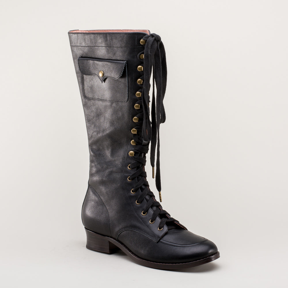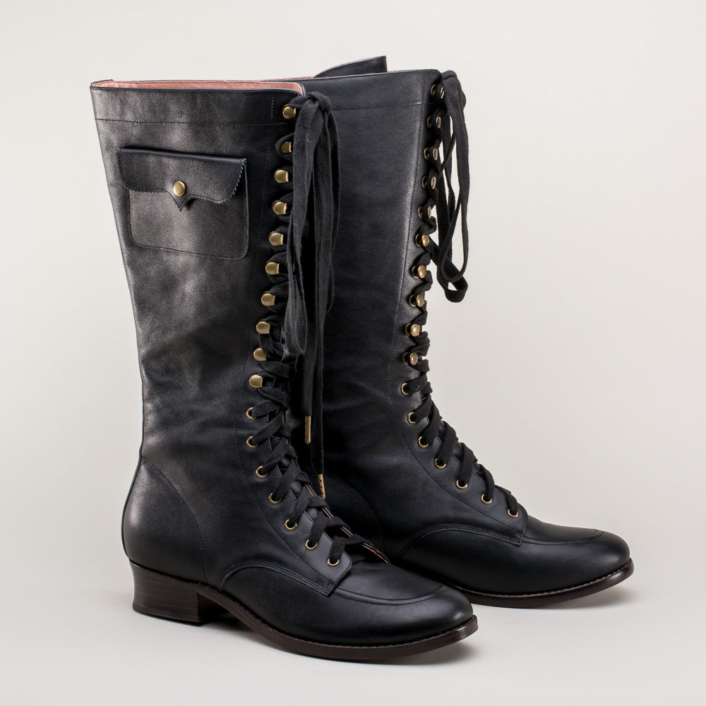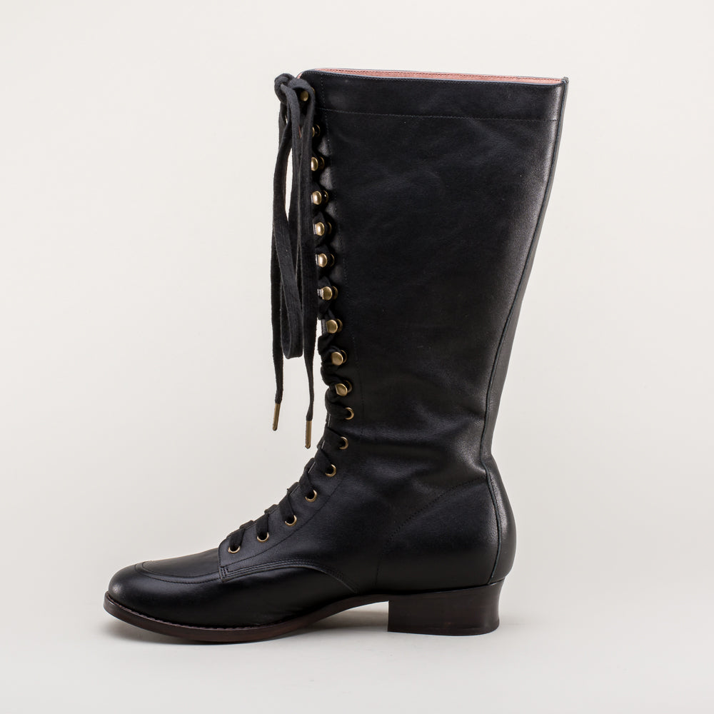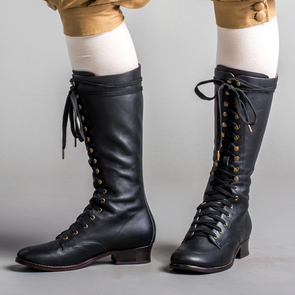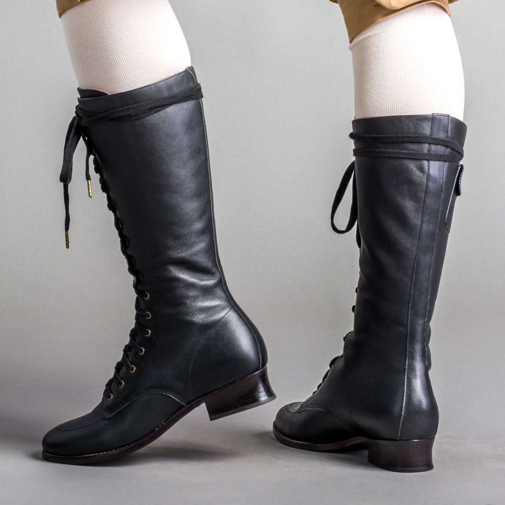 Bessie Boots are perfect for adventures from the Great War period through the 1920s, 30s, 40s, and 50s. This style of boot was popular and well-loved. Wear them for numerous cosplays, Land Girl, motorcycling, and aviator costumes, for riding, working, and hiking, with breeches or skirts, historic or modern.