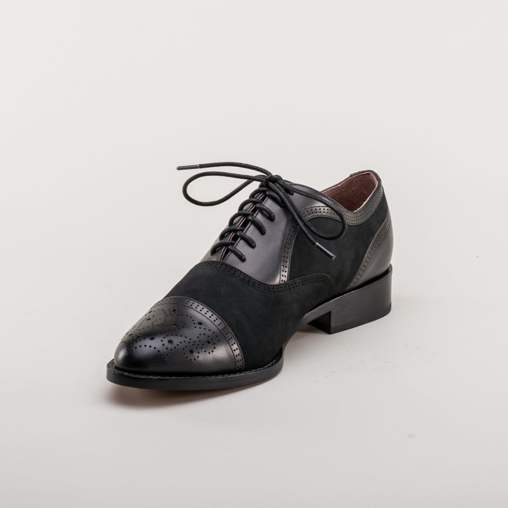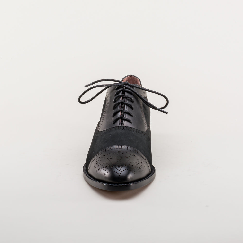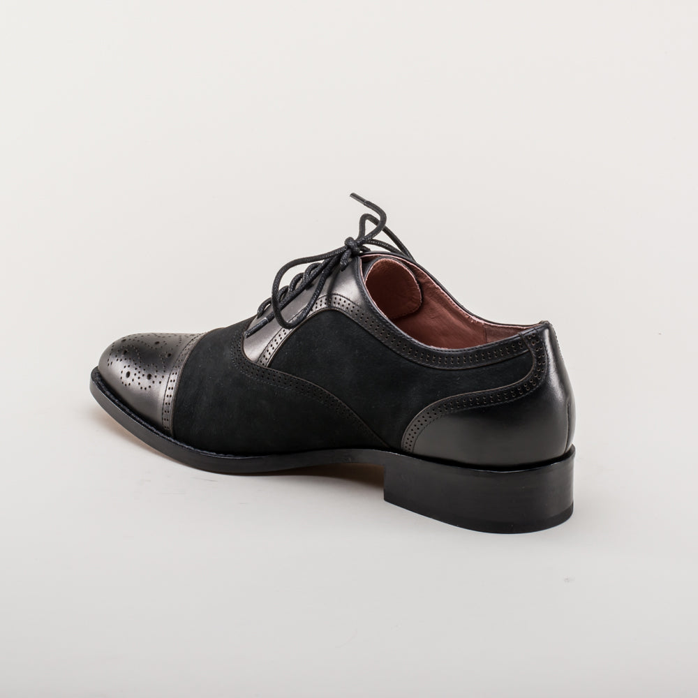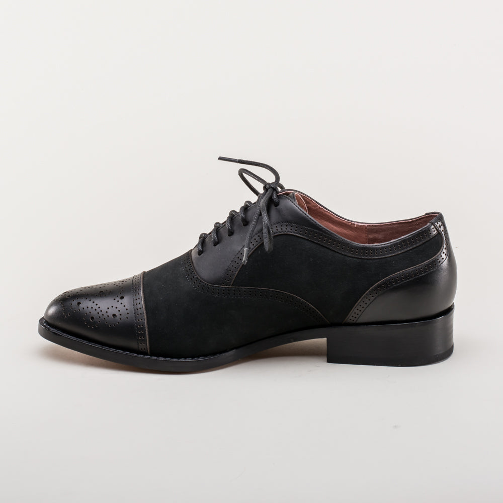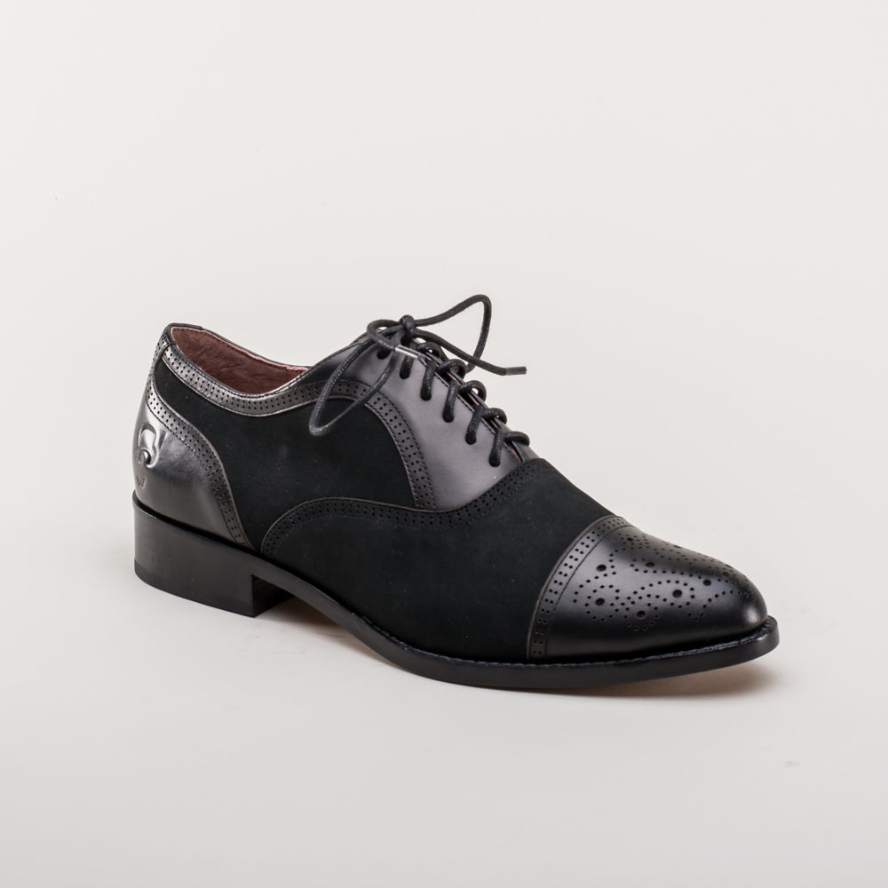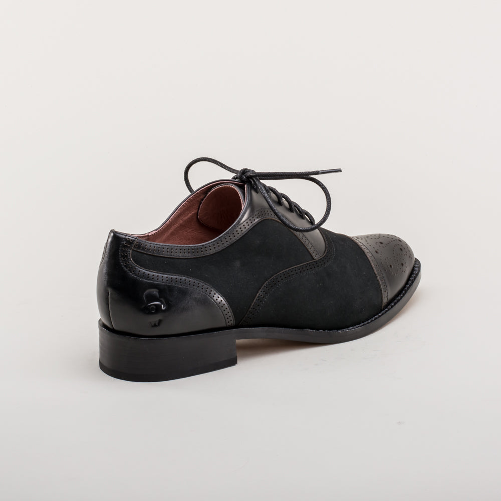 From the creative closet of Dandy Wellington come these gorgeous vintage cap toe oxfords made in rich and sophisticated nubuck and smooth leather. The Gladys oxfords feature fine brogue detailing including a clever "W" design on the cap toe along with the signature Dandy Wellington logo stamp on the heels.
